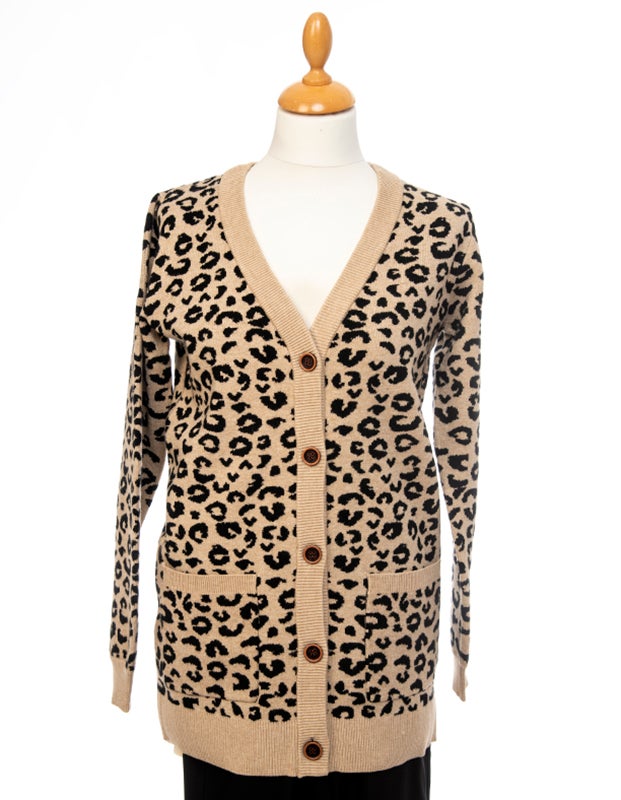 Ze-ze pitkä, eläinkuosinen neuletakki