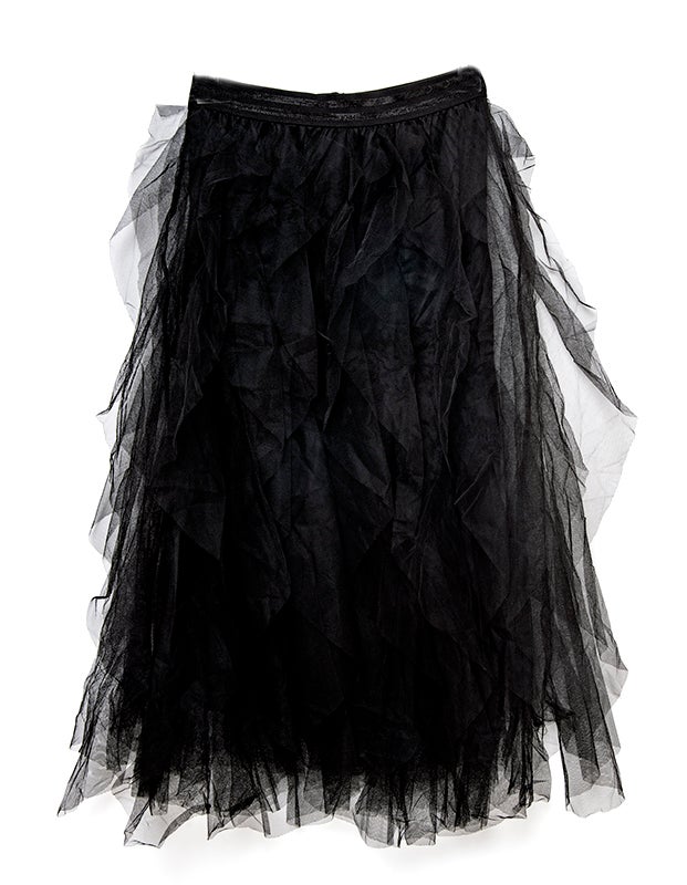 Musta tyllihame kiiltävällä vyötärökuminauhalla.