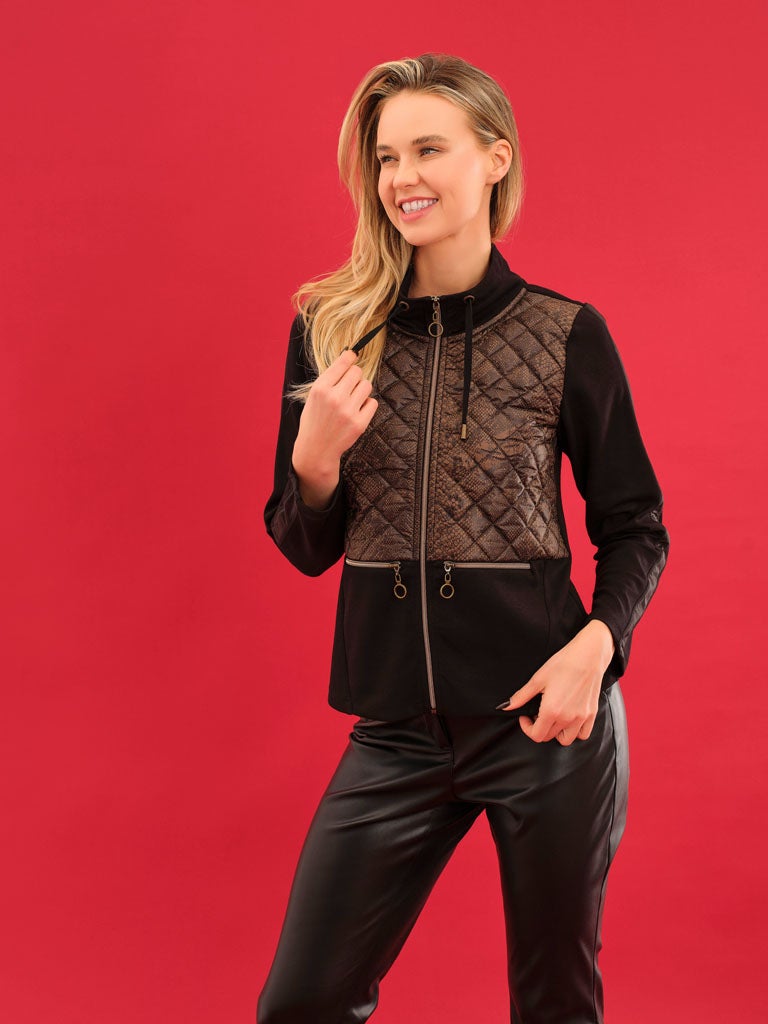 Dolcezzan musta jakku taskuilla ja vetoketjulla.