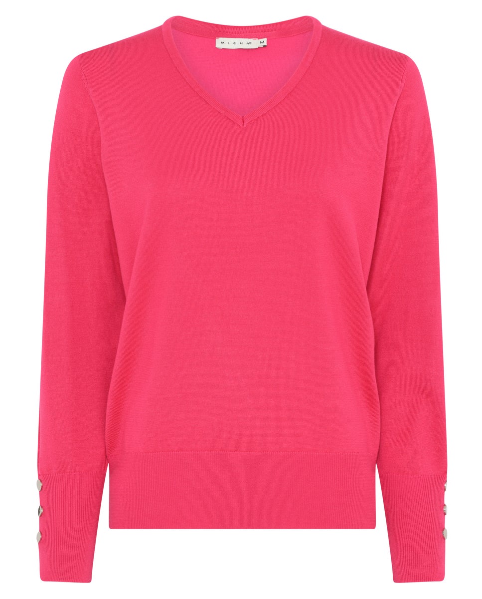 Kaunis Michan neule koristeellisella hihansuulla. Hihansuussa kauniit, hopeanväriset napit.